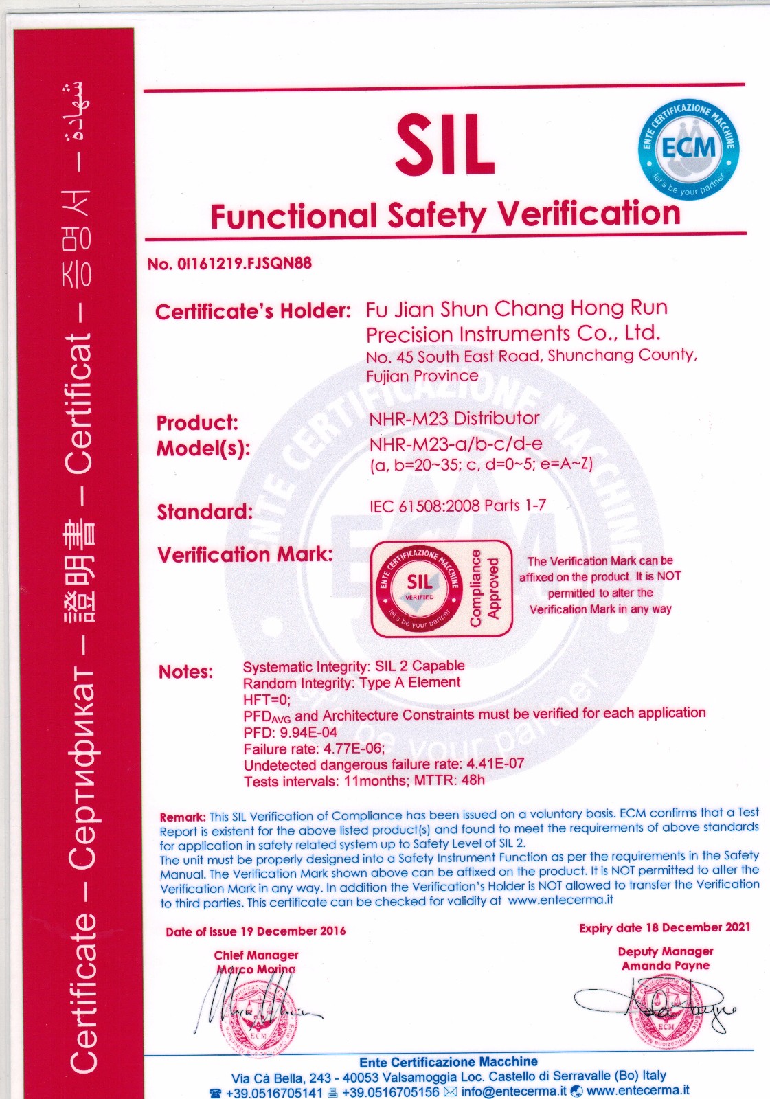 SIL2認證,是國際上公認的一種功能安全認證,英文全稱:Safety integrity Level—安全完整性等級。是根據(jù)國際電工委員會IEC頒布的功能安全標準IEC 61508(已轉(zhuǎn)化為國標GB/T 20438歸口標委會SAC/TC124/SC10)中對相關產(chǎn)品進行安全考核的認證要求。需要做SIL認證的產(chǎn)品,都是使用可能對人、環(huán)境或財產(chǎn)造成較高危害的場合,考核的主要目的也是,不能因為產(chǎn)品本身的功能問題,引起人員的傷害、環(huán)境污染和財產(chǎn)損失。