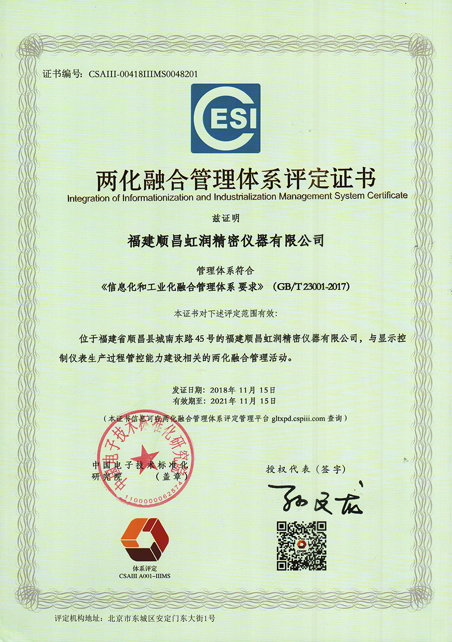 近年來,虹潤公司積極響應(yīng)國家號召,堅(jiān)持走“專業(yè)化、精細(xì)化、特色化、新穎化”的專精特新發(fā)展道路,邁出了可喜的步伐。公司是國家高新技術(shù)企業(yè)、國家級知識產(chǎn)權(quán)優(yōu)勢企業(yè)、福建省戰(zhàn)略性新興產(chǎn)業(yè)骨干企業(yè)、福建省科技小巨人領(lǐng)軍企業(yè),和上海理工大學(xué)莊松林院士合作建立了院士專家工作站,擁有500多項(xiàng)國家專利及100多項(xiàng)軟件著作權(quán)。主持或參與制定了56項(xiàng)國家標(biāo)準(zhǔn),嚴(yán)格按照ISO9001標(biāo)準(zhǔn)建立了質(zhì)量管理體系,“虹潤”商標(biāo)被國家工商局認(rèn)定為“中國馳名商標(biāo)”。獲得工信部兩化融合管理體系認(rèn)證、歐盟CE認(rèn)證,國際SIL功能安全認(rèn)證,國家防爆證。公司先后研發(fā)出了數(shù)顯表與溫控器、無紙記錄儀、隔離器與安全柵、溫度變送器、壓力變送器、電量表與變送器、電能質(zhì)量分析儀、過程校驗(yàn)儀、可編程控制器、環(huán)境監(jiān)測儀表等十大系列高新技術(shù)產(chǎn)品,為用戶提供了技術(shù)含量高、品質(zhì)一流的優(yōu)質(zhì)產(chǎn)品和服務(wù),受到了用戶的廣泛贊譽(yù)。