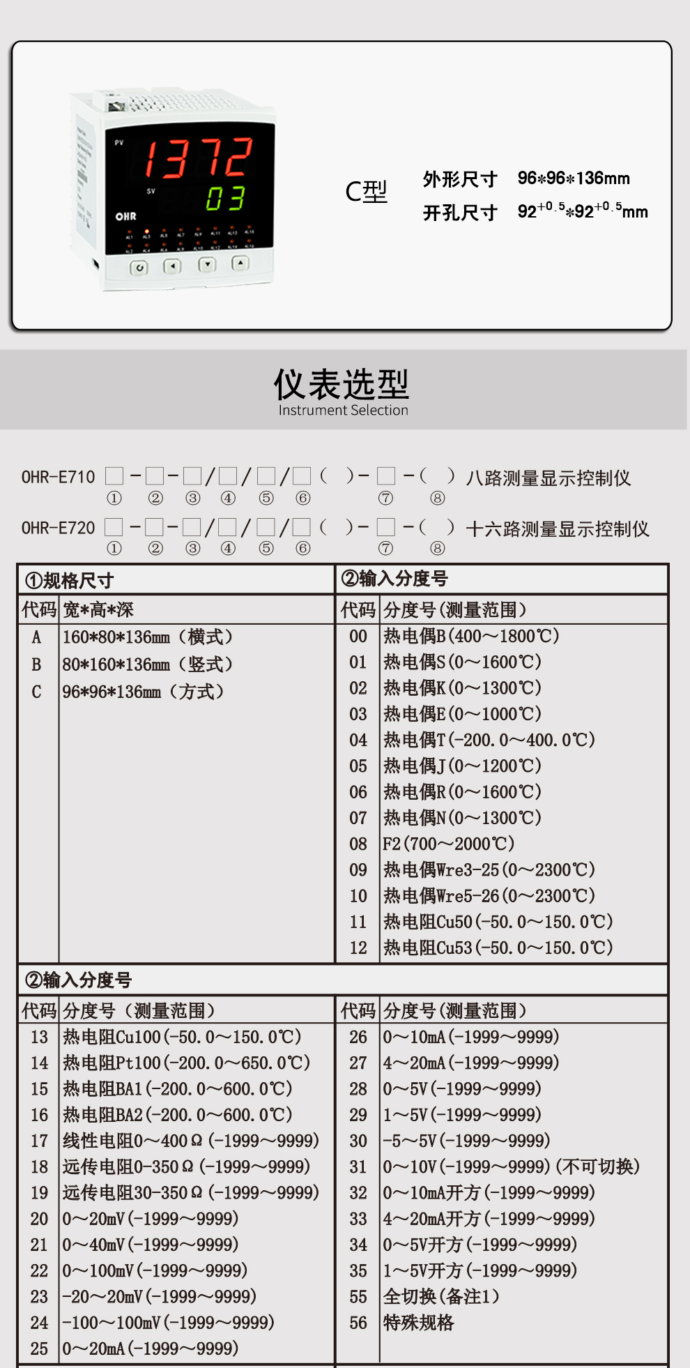 OHR-E700系列多回路測(cè)量顯示控制儀針對(duì)現(xiàn)場(chǎng)溫度、壓力、液位、速度等各種信號(hào)進(jìn)行采集、顯示、控制、遠(yuǎn)傳、通訊、 打印等處理,構(gòu)成數(shù)字采集系統(tǒng)及控制系統(tǒng),適用于需要進(jìn)行多測(cè)量點(diǎn)巡回檢測(cè)的系統(tǒng)。