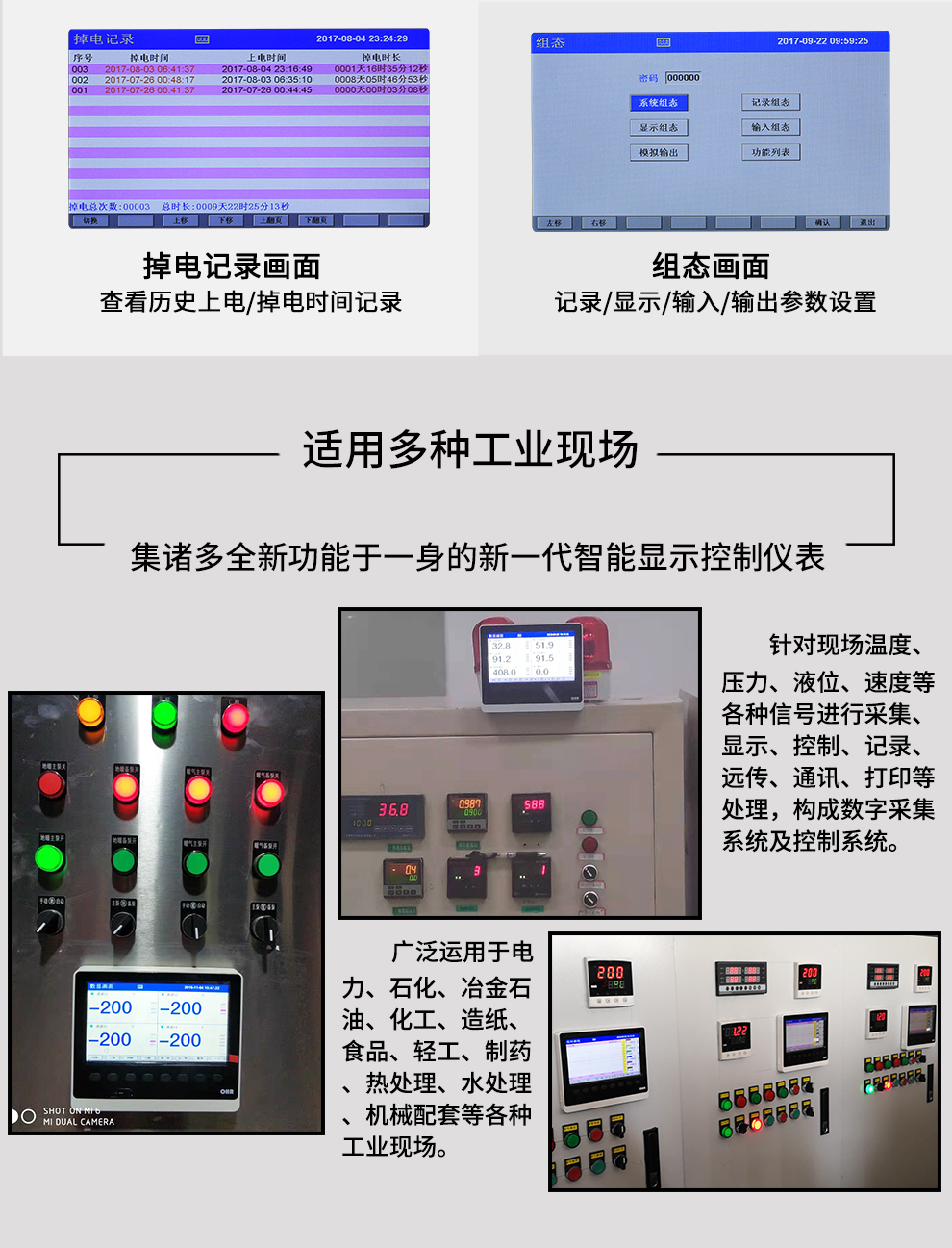 OHR-F800系列彩色無紙記錄儀采用新型大規(guī)模集成電路,對輸入、輸出、電源、信號采取可靠保護(hù)和強(qiáng)抗干擾設(shè)計(jì)。機(jī)身短節(jié)約空間,深度僅為76mm。12路萬能信號輸入,可帶12路報警輸出,6個變送輸出,RS485通訊接口,以太網(wǎng)接口,微型打印機(jī)接口和USB接口,SD卡插座。