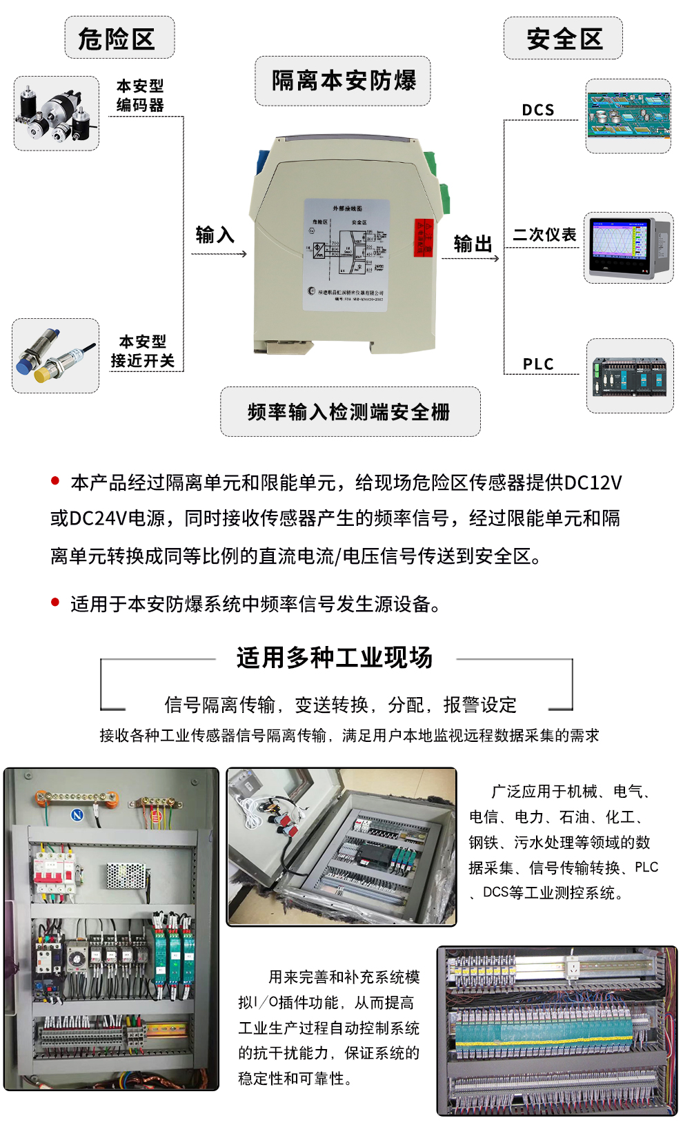 OHR-A34系列頻率輸入檢測(cè)端隔離柵可給現(xiàn)場(chǎng)危險(xiǎn)區(qū)儀表提供12V或24V的隔離電源,危險(xiǎn)區(qū)儀表產(chǎn)生的頻率信號(hào)通過安全柵隔離傳輸?shù)桨踩珎?cè)輸出。輸入具有較高的抗干擾性能。該產(chǎn)品需獨(dú)立供電,輸入/輸出/電源三隔離。本產(chǎn)品可用在頻率信號(hào)源等設(shè)備。