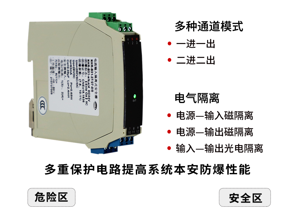 OHR-B31系列電壓/電流輸出操作端隔離柵將安全區(qū)來自DCS或PLC等電氣設備的信號經(jīng)過安全柵(保護)隔離以后再輸出線性的直流電壓/電流信號,以此來驅(qū)動現(xiàn)場的執(zhí)行機構(gòu),該產(chǎn)品需獨立供電,輸入/輸出/電源三隔離。