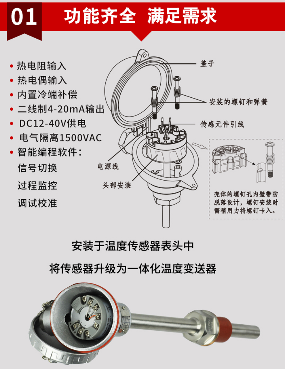 OHR-214隔離智能溫度變送器(圓卡),用于熱電阻(RTD)、熱電偶(TC)信號(hào)輸入,二線(xiàn)制4~20mA模擬輸出,安裝于傳感器內(nèi)部(Form B)。