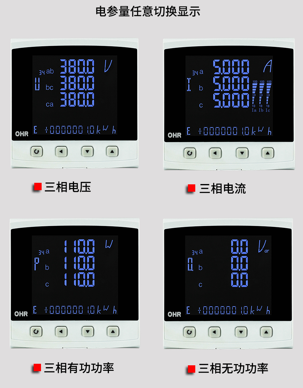 OHR-C500系列液晶綜合電量集中顯示儀是一款用于中低壓系統(tǒng)智能化裝置,集數據采集和控制功能于一身,具有電力參數測量及電能計量為一體。它采用大規(guī)模集成電路和高亮度長壽命的LED顯示器并支持RS485接口MODBUS通訊協(xié)議或多種協(xié)議。