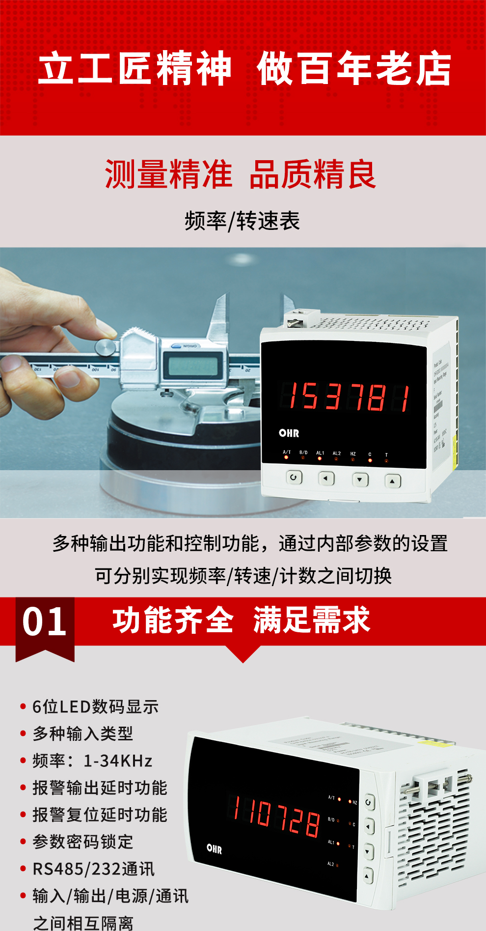 OHR-B400系列頻率/轉(zhuǎn)速表采用全自動貼片封裝工藝,具有很強(qiáng)的抗干擾能力,并具有多種輸出功能和控制功能,與多種轉(zhuǎn)速傳感器配套,廣泛運用于電力、石化、冶金、輕工、制藥、航空等諸多領(lǐng)域。