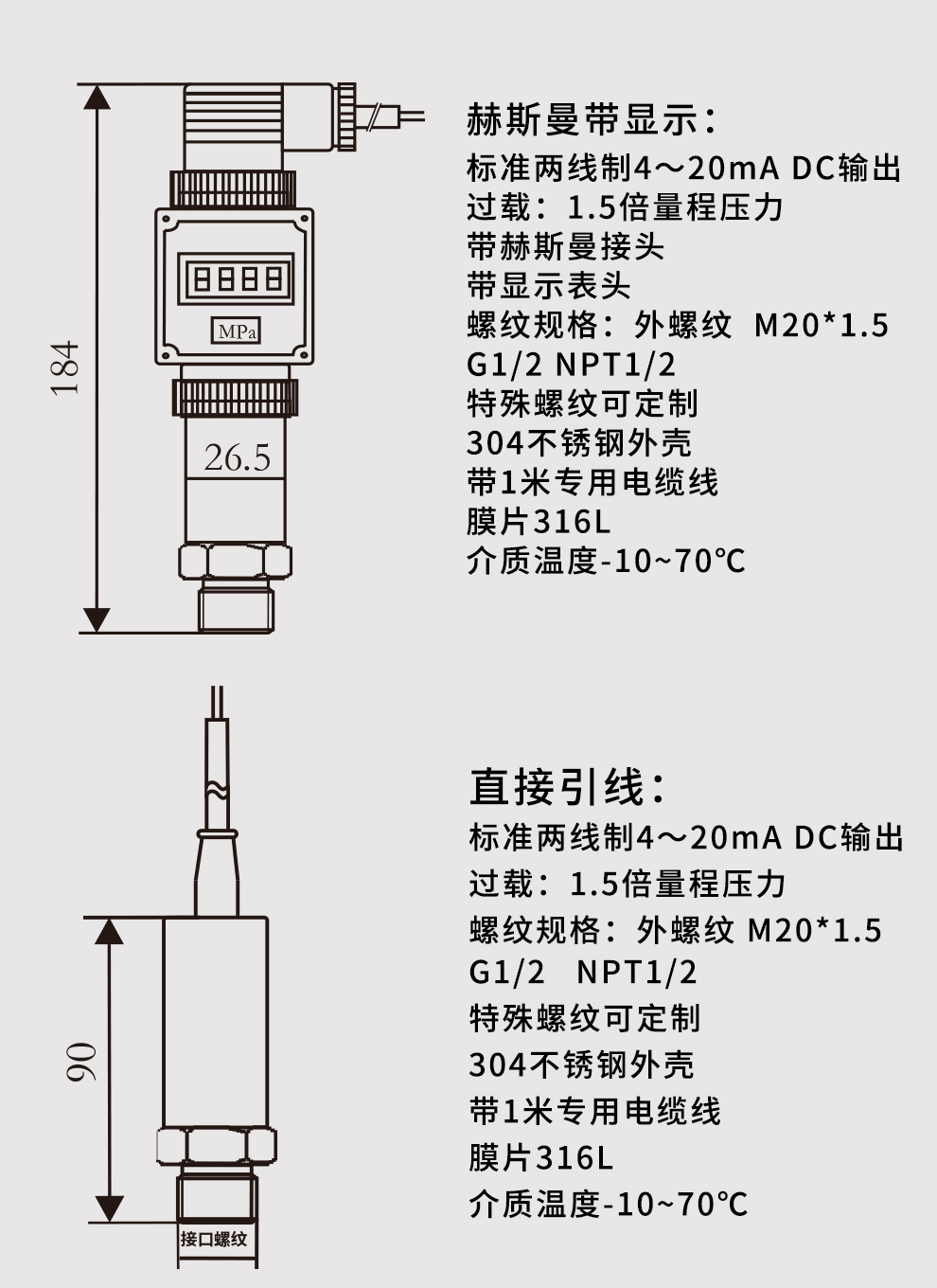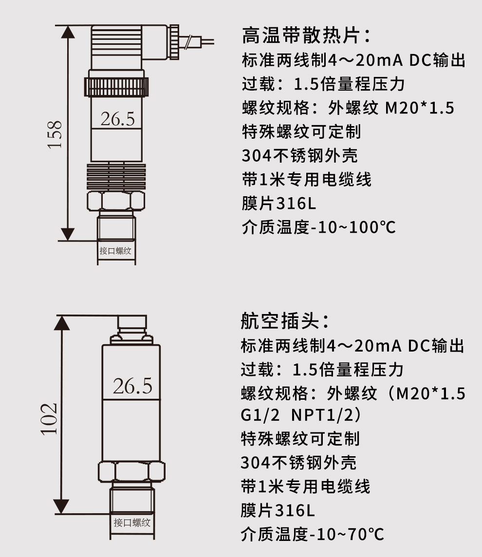M系列小巧型壓力變送器內(nèi)部使用擴(kuò)散硅壓阻式傳感器,其結(jié)構(gòu)簡單,體積小巧,易安裝;以其優(yōu)良的可靠性、適用性、靈活性和多樣性,廣泛的應(yīng)用于航空、航天、石油、化工、冶金、電力、水利等工業(yè)過程現(xiàn)場的壓力測量和控制。