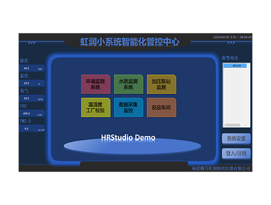 HRStudio 組態(tài)軟件是虹潤(rùn)公司歷經(jīng)多年潛心研發(fā)、擁有完全自主知識(shí)產(chǎn)權(quán)的核心產(chǎn)品,是一款功能多樣的自動(dòng)化系統(tǒng)軟件。適用于監(jiān)控中心平臺(tái)的 SCADA 監(jiān)控系統(tǒng)開發(fā),可在個(gè)人 PC 或監(jiān)控中心大屏上集中監(jiān)控展示數(shù)據(jù)。同時(shí),該軟件還能用于虹潤(rùn) HMI人機(jī)界面、嵌入式采集控制工作站,以及SZ80 水質(zhì)多參數(shù)控制器的二次開發(fā)