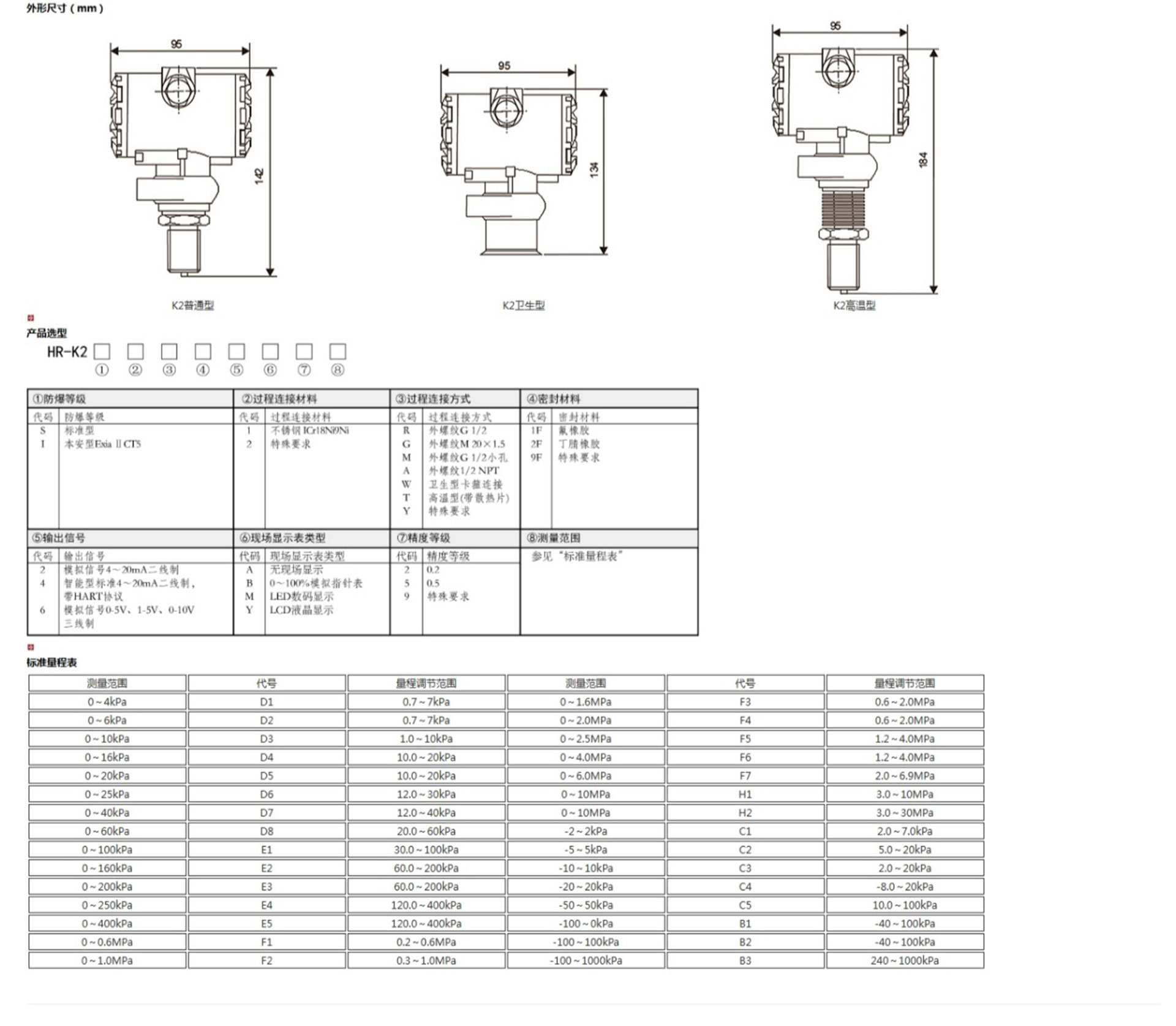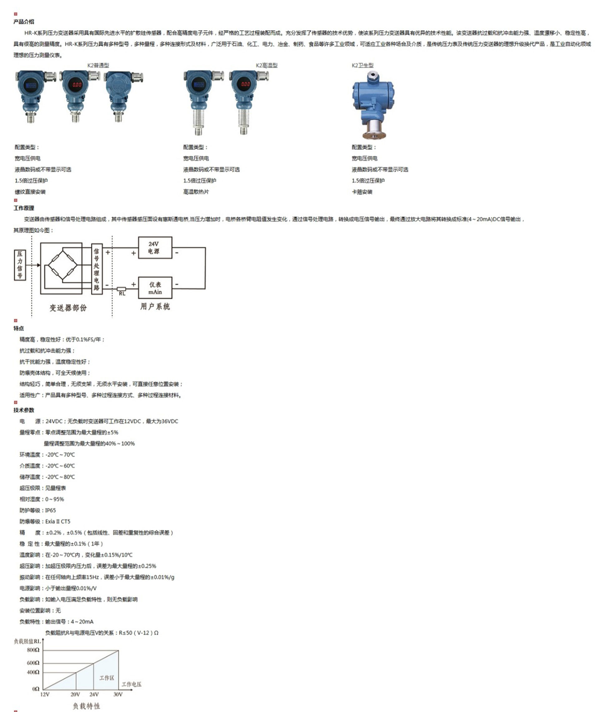HR-K系列壓力變送器采用具有國際先進(jìn)水平的擴(kuò)散硅傳感器,配合高精度電子元件,經(jīng)嚴(yán)格的工藝過程裝配而成。充分發(fā)揮了傳感器的技術(shù)優(yōu)勢,使該系列壓力變送器具有優(yōu)異的技術(shù)性能。該變送器抗過載和抗沖擊能力強(qiáng)、溫度漂移小、穩(wěn)定性高,具有很高的測量精度。